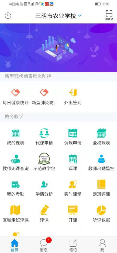 方法二:在“学习通”APP首页,点击顶部“首页”可切换到“三明市农业学校”首页。点击“每日健康统计”,填写完成提交即可。