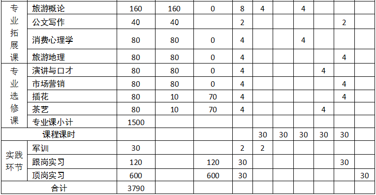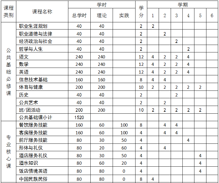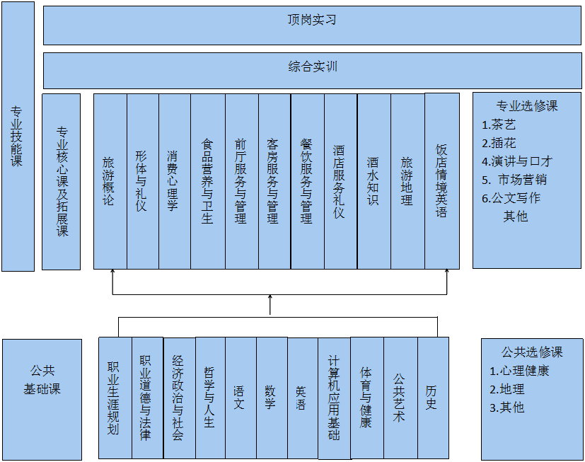 说明:要求学生在校期间取得计算机等级证书外在前厅、客房、餐厅服务员三种证书中选考一种,还可自选考取其他证书。