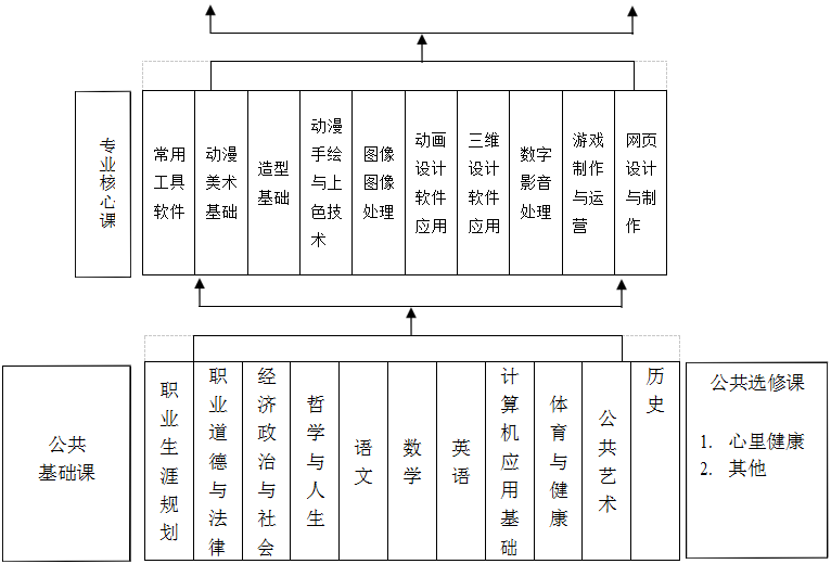 公共基础包括德育课、文化课、体育与健康,公共艺术、历 史,以及其他自然科学和认为科学类基础学科。