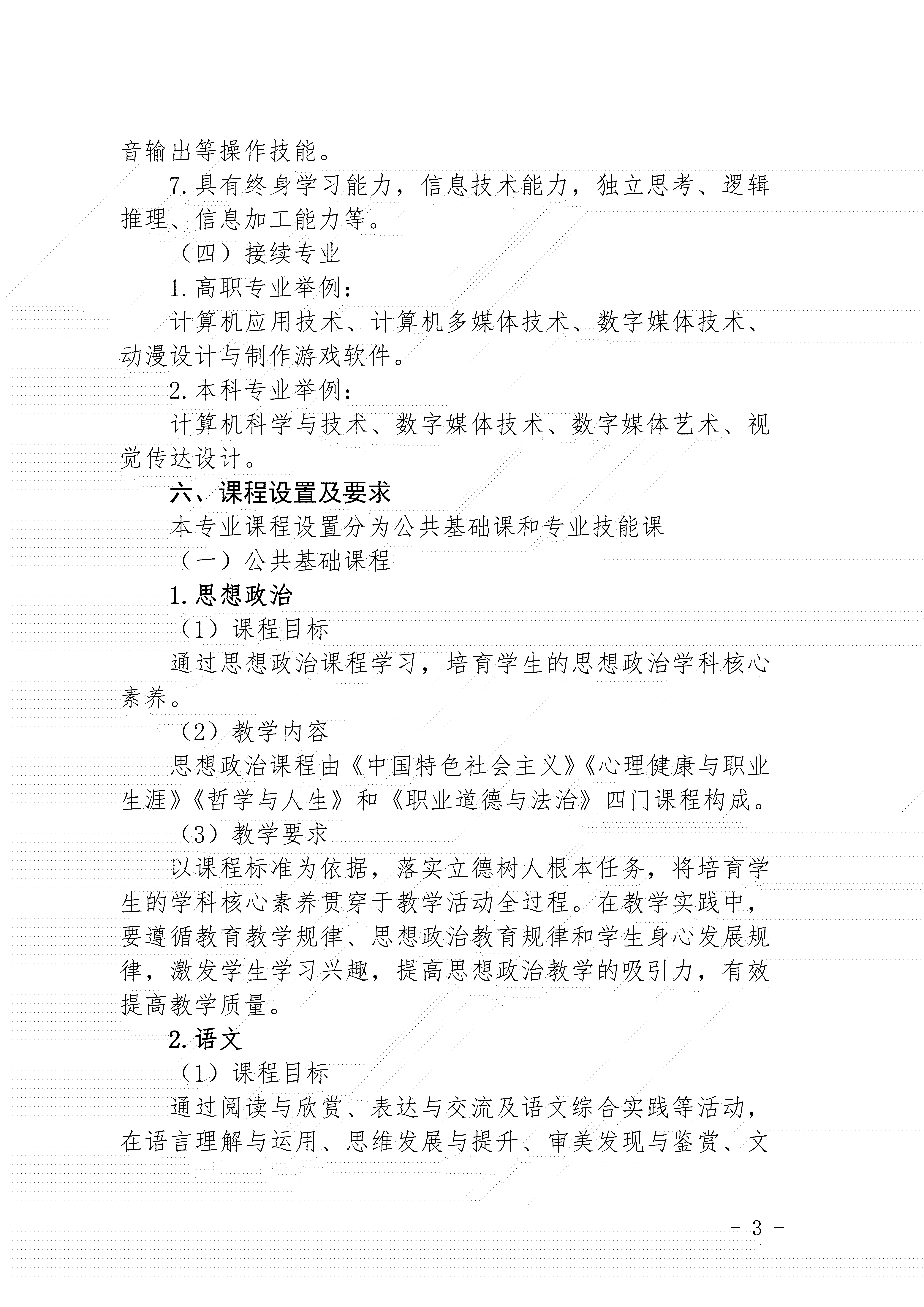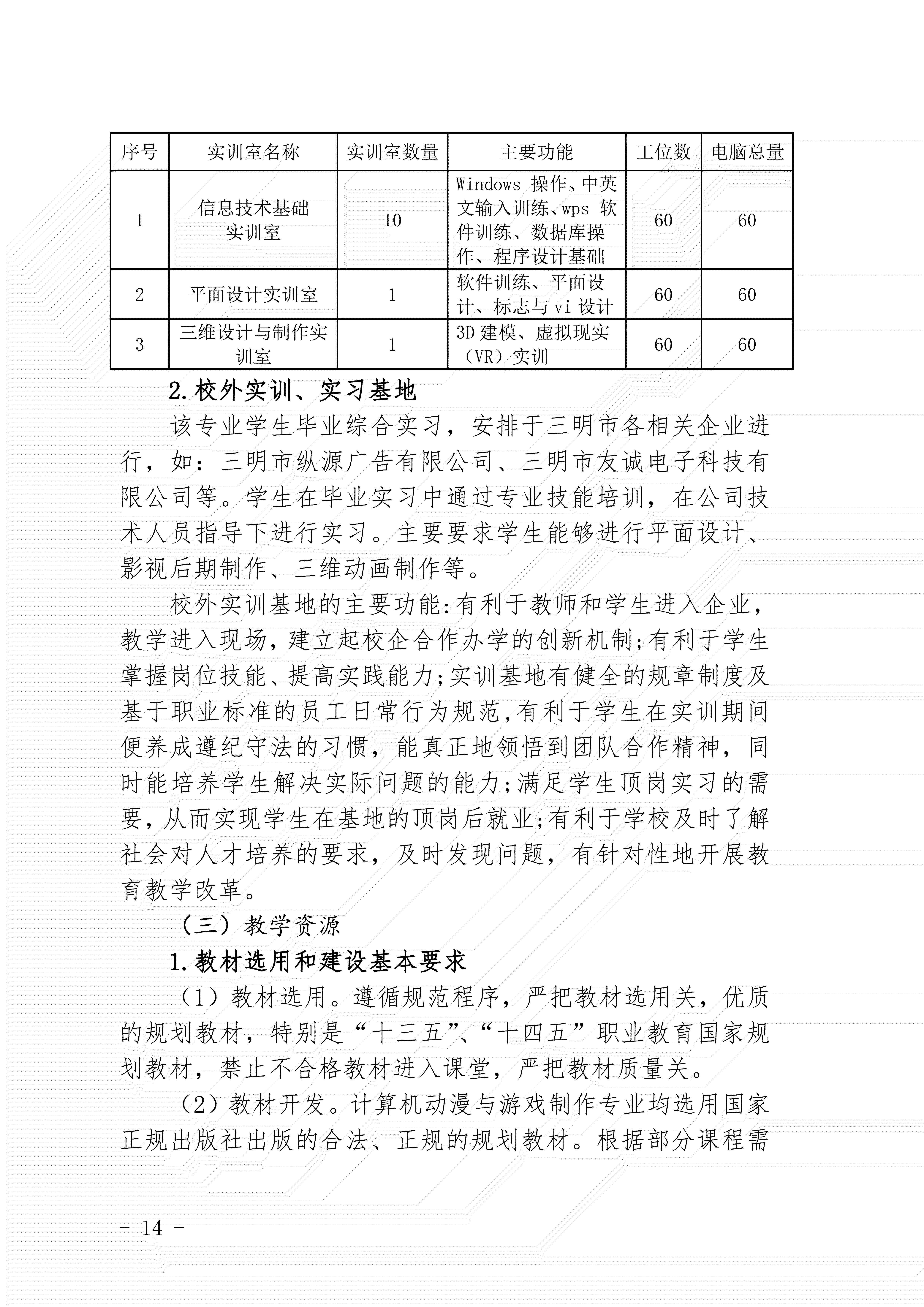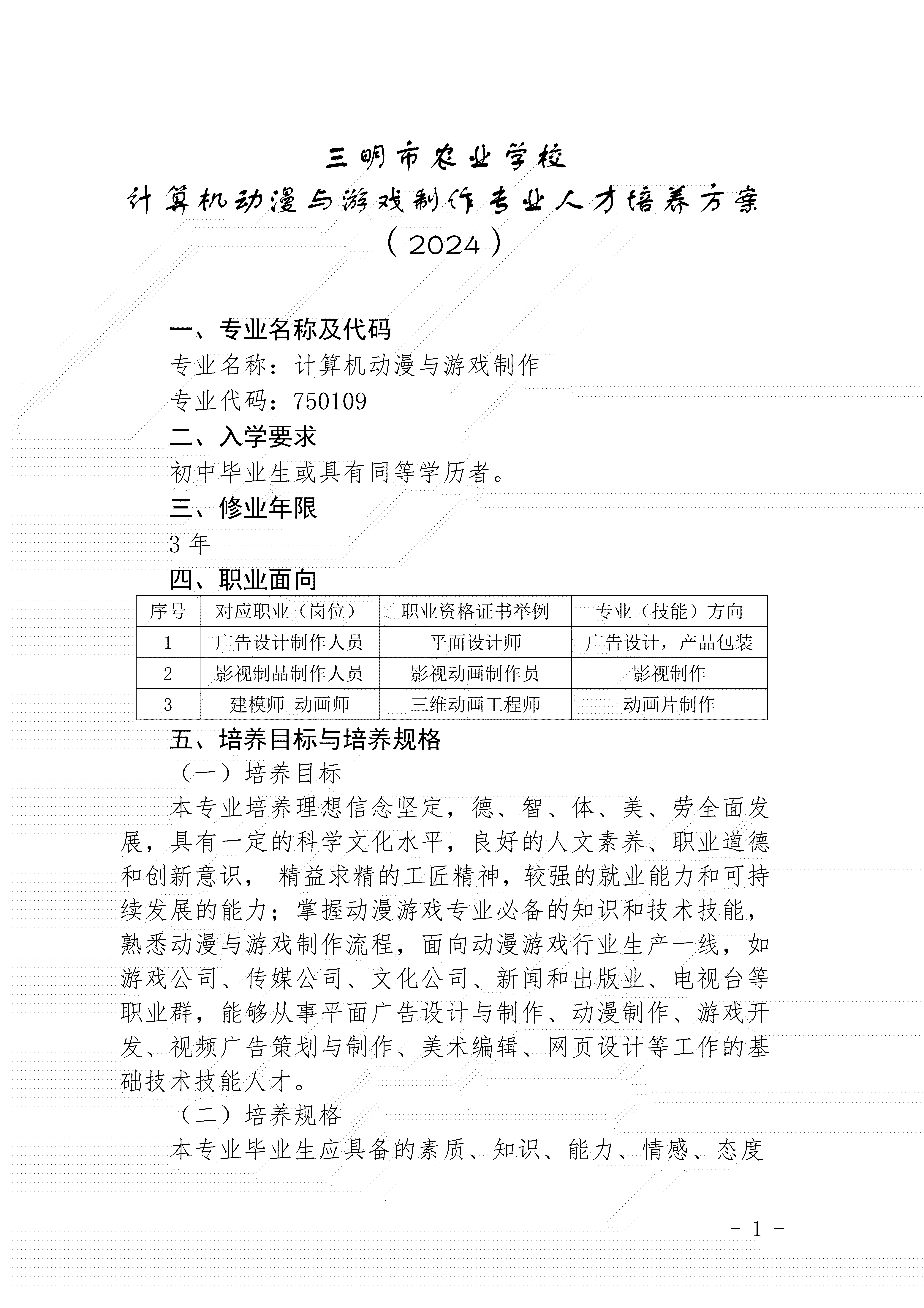 三明市农业学校动漫与游戏制作专业人才培养方案(2024)