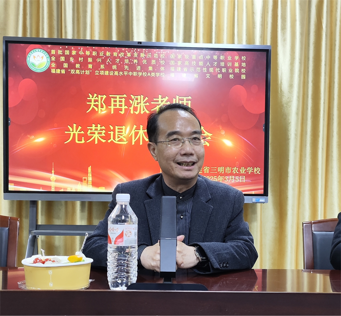 三尺讲台育桃李,一支粉笔写春秋。 2025年3月5日,三明市农业学校会议室内欢声笑语,情意浓浓,一场温馨而简朴的荣休座谈会正在这里举行。学校领导、教研组全体教师齐聚一堂,热烈欢送郑再涨老师光荣退休。