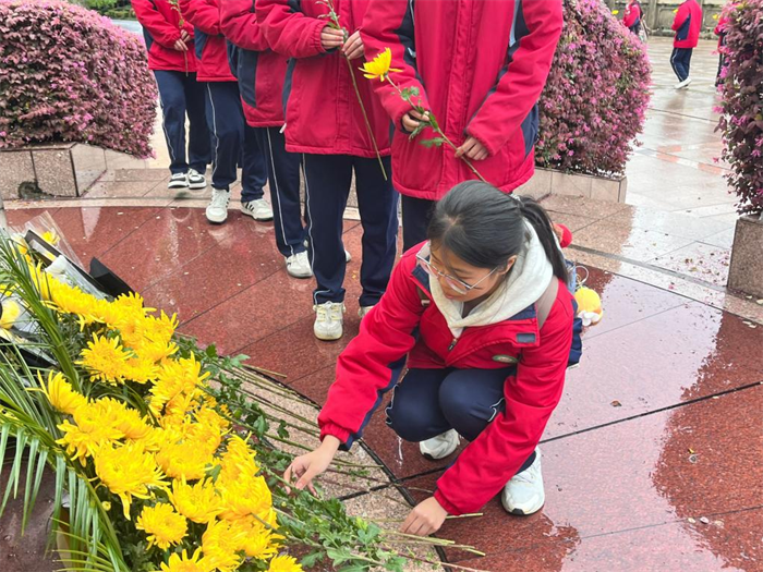 随后,学生们将手中的鲜花一一敬献在烈士墓前,用这最朴素的方式表达对先烈们的无限敬仰和深切怀念。