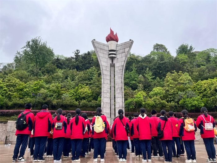 青山埋忠骨,史册载功勋。纪念碑庄严屹立,仿佛在诉说着那段烽火连天的岁月和英雄们不朽的功勋。在校团委官炳火书记的带领下,全体师生列队站立,默哀鞠躬,以无声的仪式表达对先烈们的深切缅怀和崇高敬意。