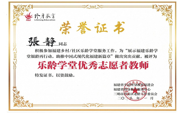 张静老师的手作美丽课程开设于2016年,开展天然植物护肤品和香薰类DIY,手工艺品和非遗手工如漂漆、拓染、扎染、蓝晒等多种类型的手工制作项目教学。并于2019 年3月开始送教进社区,累计送教近40场次。张静老师也于2025年1月被评为福建省“乐龄学堂优秀志愿者教师”。
