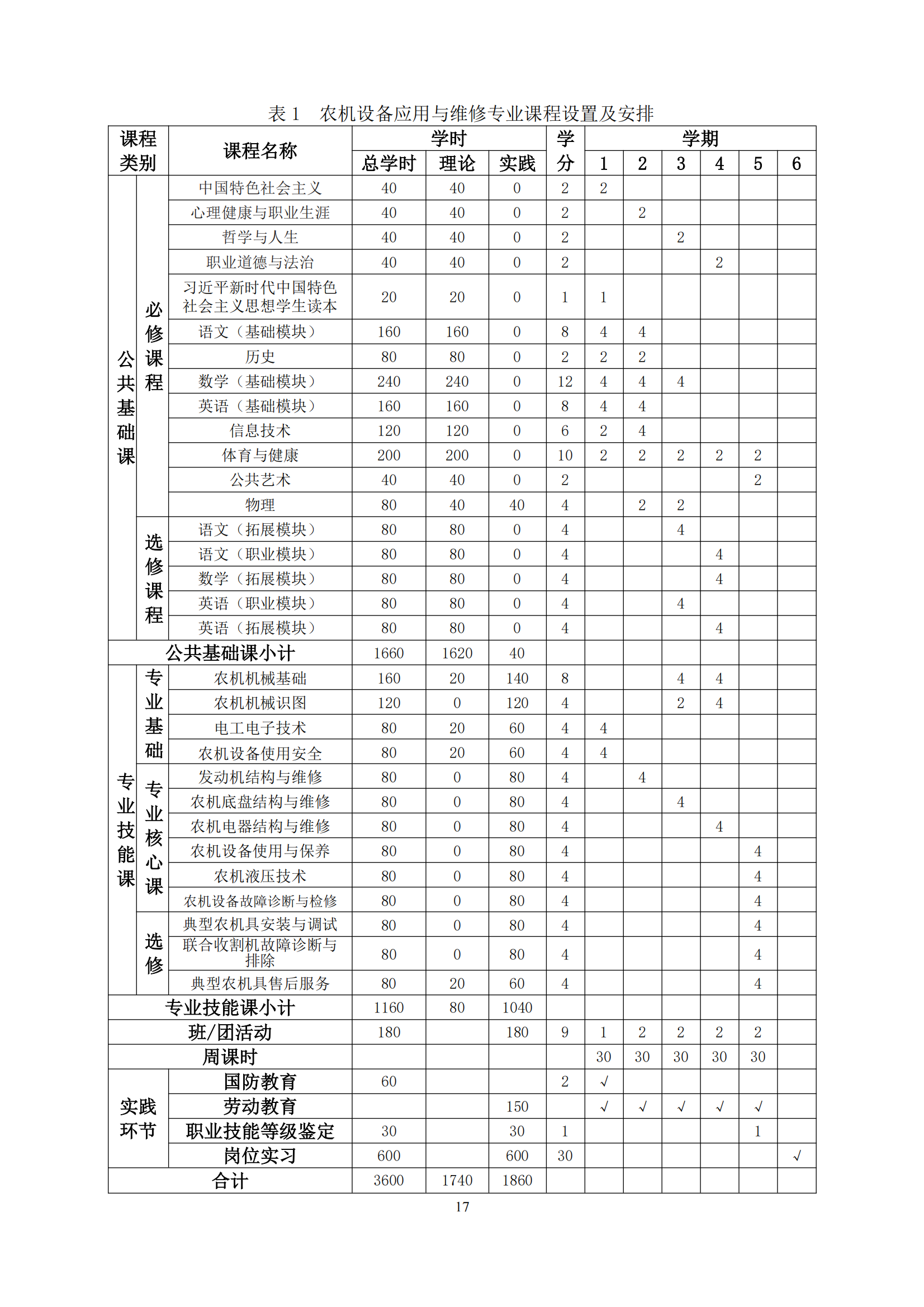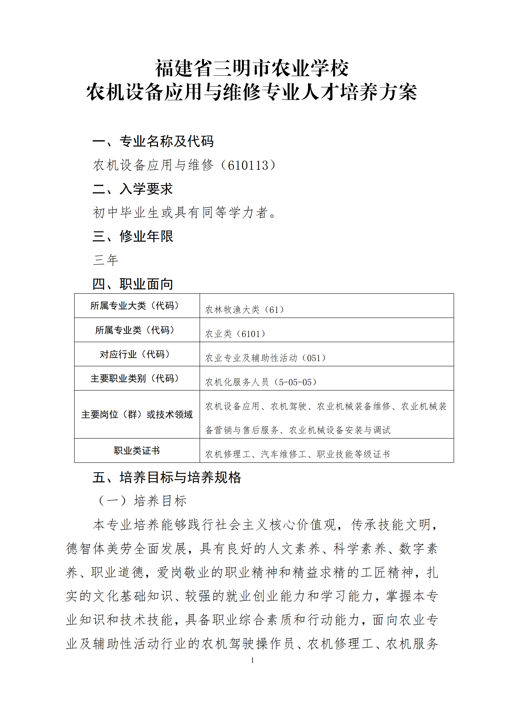 KAIYUN(中国)官方网站农机设备应用与维修专业人才培养方案